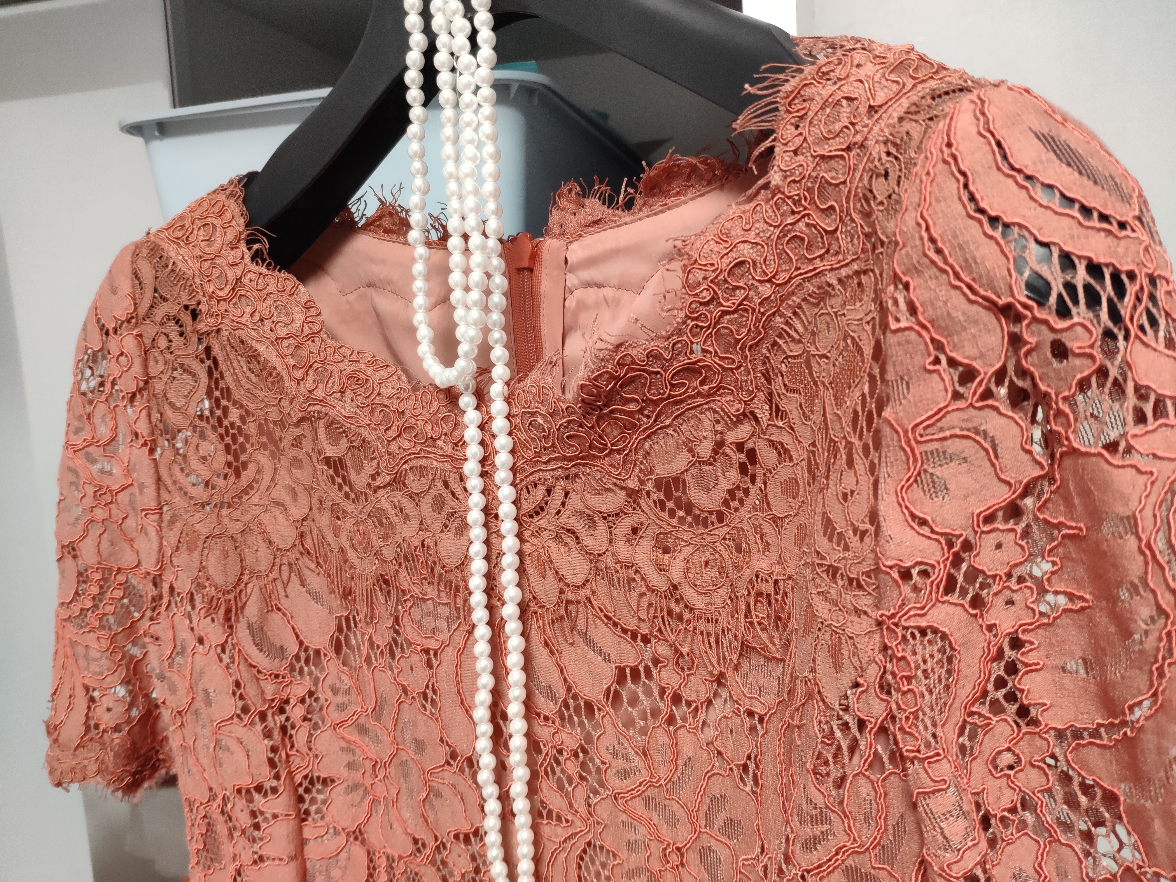 이번에 30대여자생일선물 주려고 고른 지고트원피스 는 레이스 디자인의 코랄 색상 원피스 였어요. 화면으로 보는 색상보다 조금 더 진하고 화사한 느낌인데요 피부톤이 밝은 분에게 더 어울릴것 같아요.
